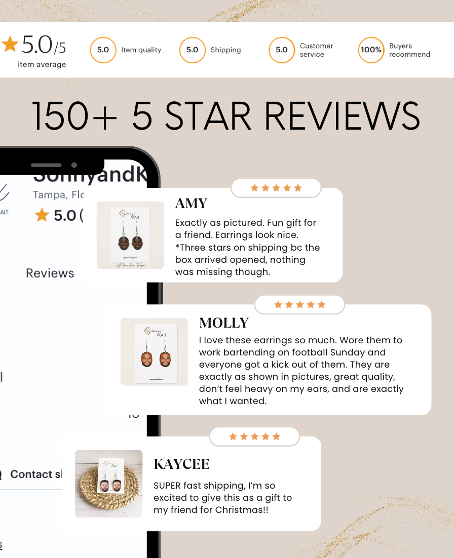 These handmade acrylic earrings are crafted with *hypoallergenic*, nickel-free findings—perfect for sensitive ears. Every pair is professionally printed and laser-cut in the USA, then lovingly designed and assembled in Tampa, Florida, by Sonny & Kait.